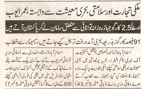 Bahria University NIMA holds seminar on Maritime economy & its linkage to national security