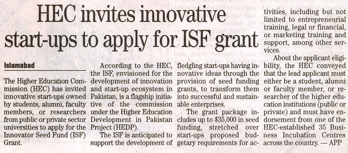 HEC invites innovative start-ups to apply for ISF grant