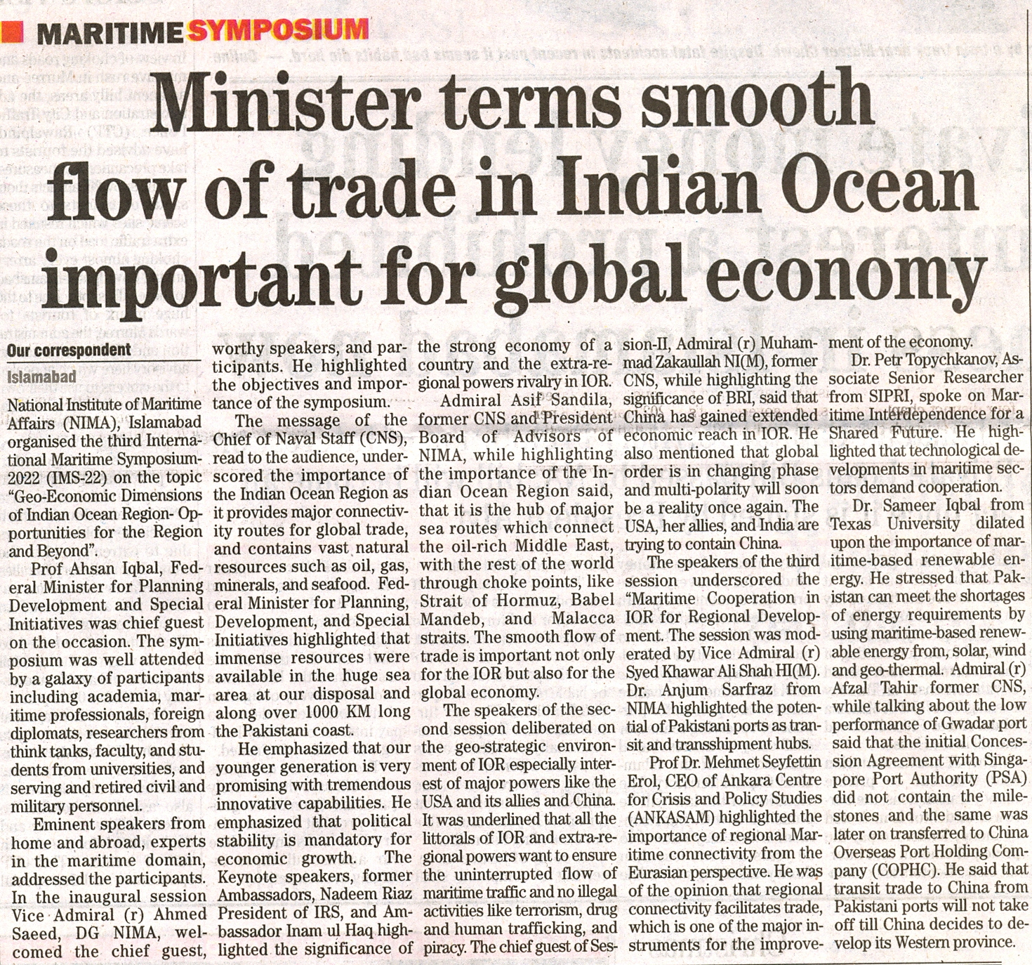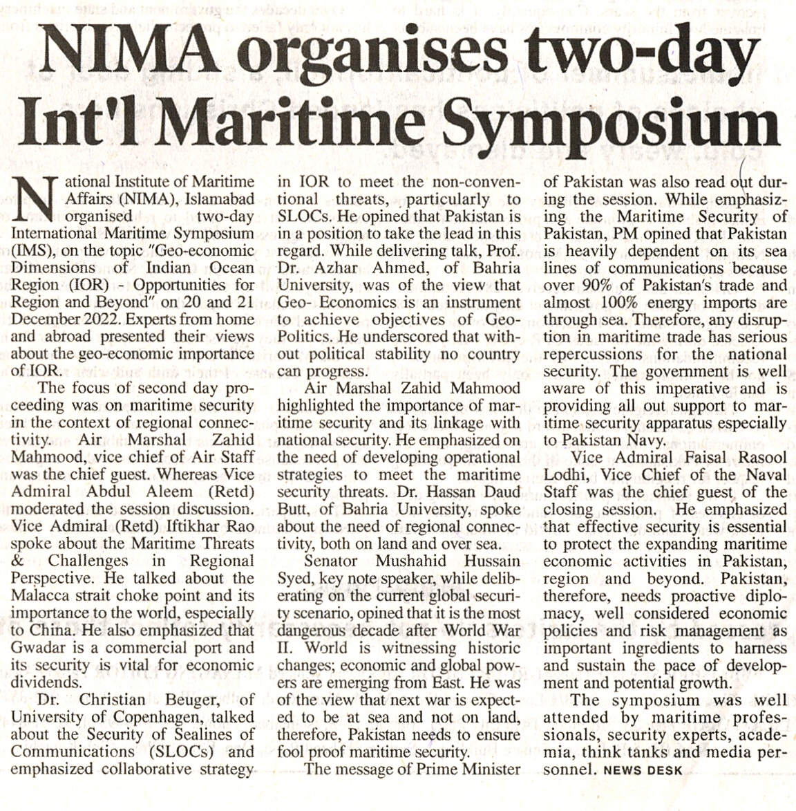 NIMA Organization two-day Int'l Maritime Symposium
