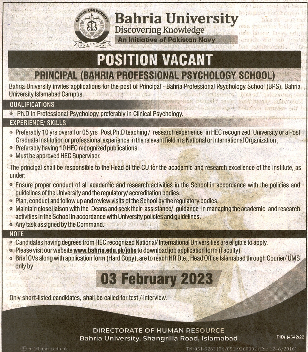 Principal (Bahria Professional Psychology School)