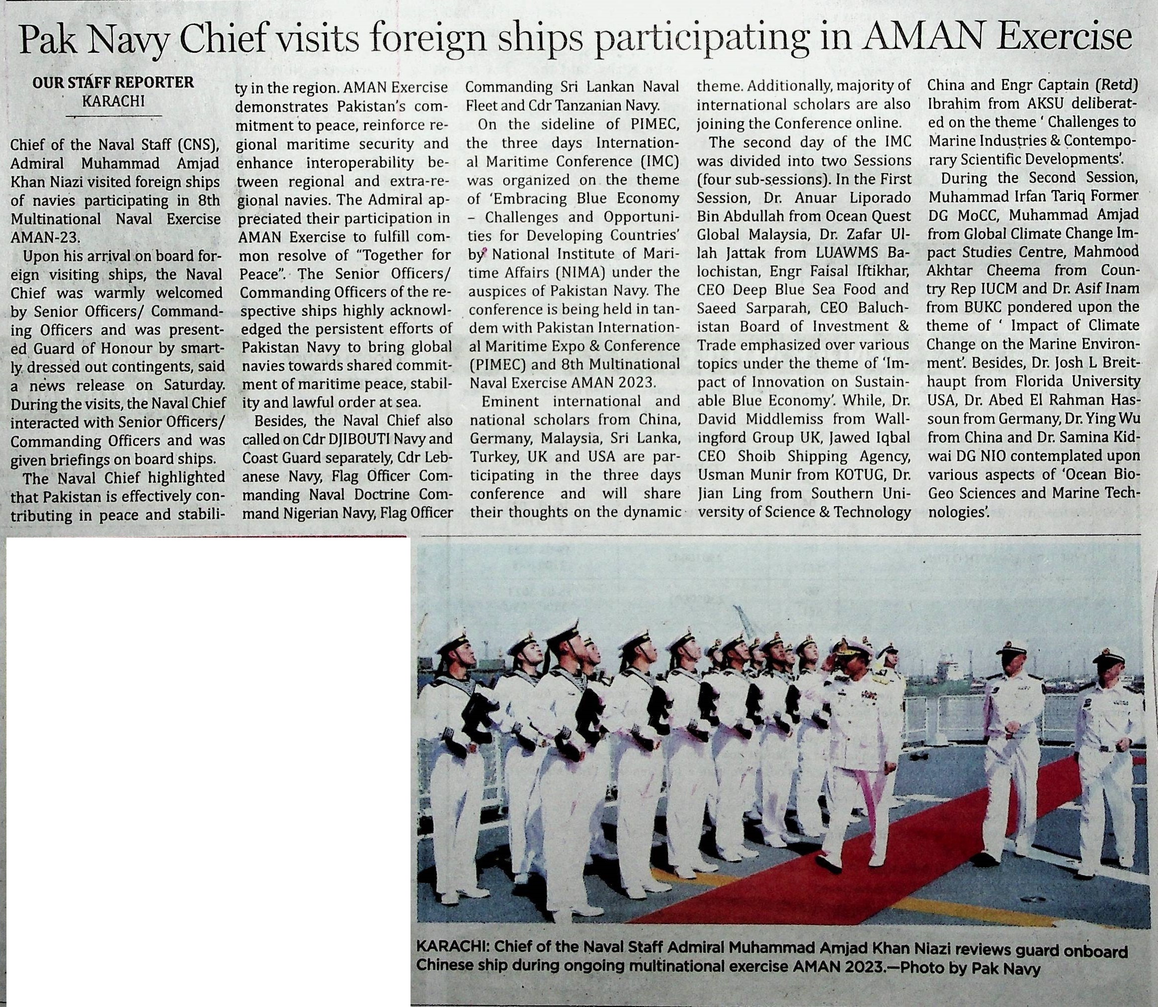 Pakistan Navy Chief Visits Foreign Ships Participating in AMAN Exercise
