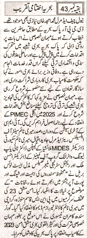 Pakistan Maritime Exhibition held in Tandem with AMAN-23 Culminates
