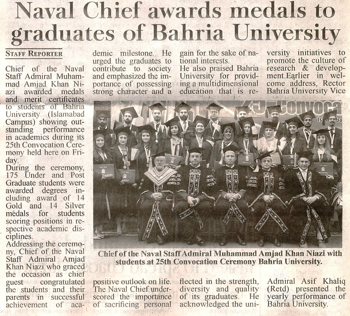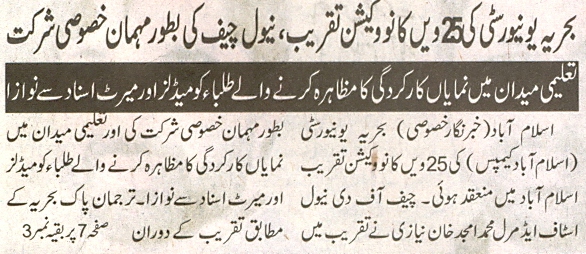 Naval Chief Awards Medals to Graduates of Bahria University