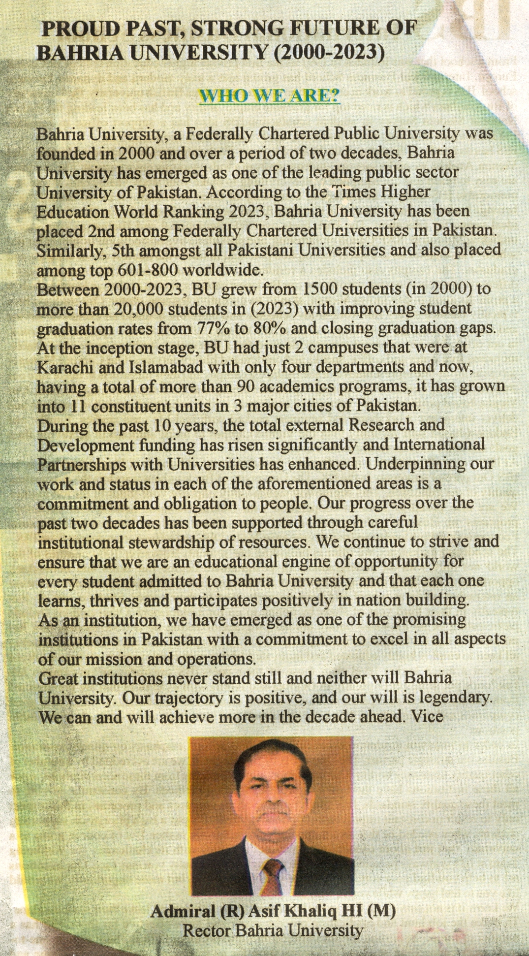 Proud Past, Strong Future of Bahria University (2000-2023) Who We Are?