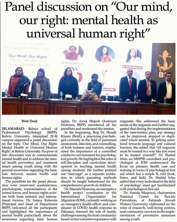 Panel Discussion on "Our Mind Our Right: Mental Health as Universal Human Right"