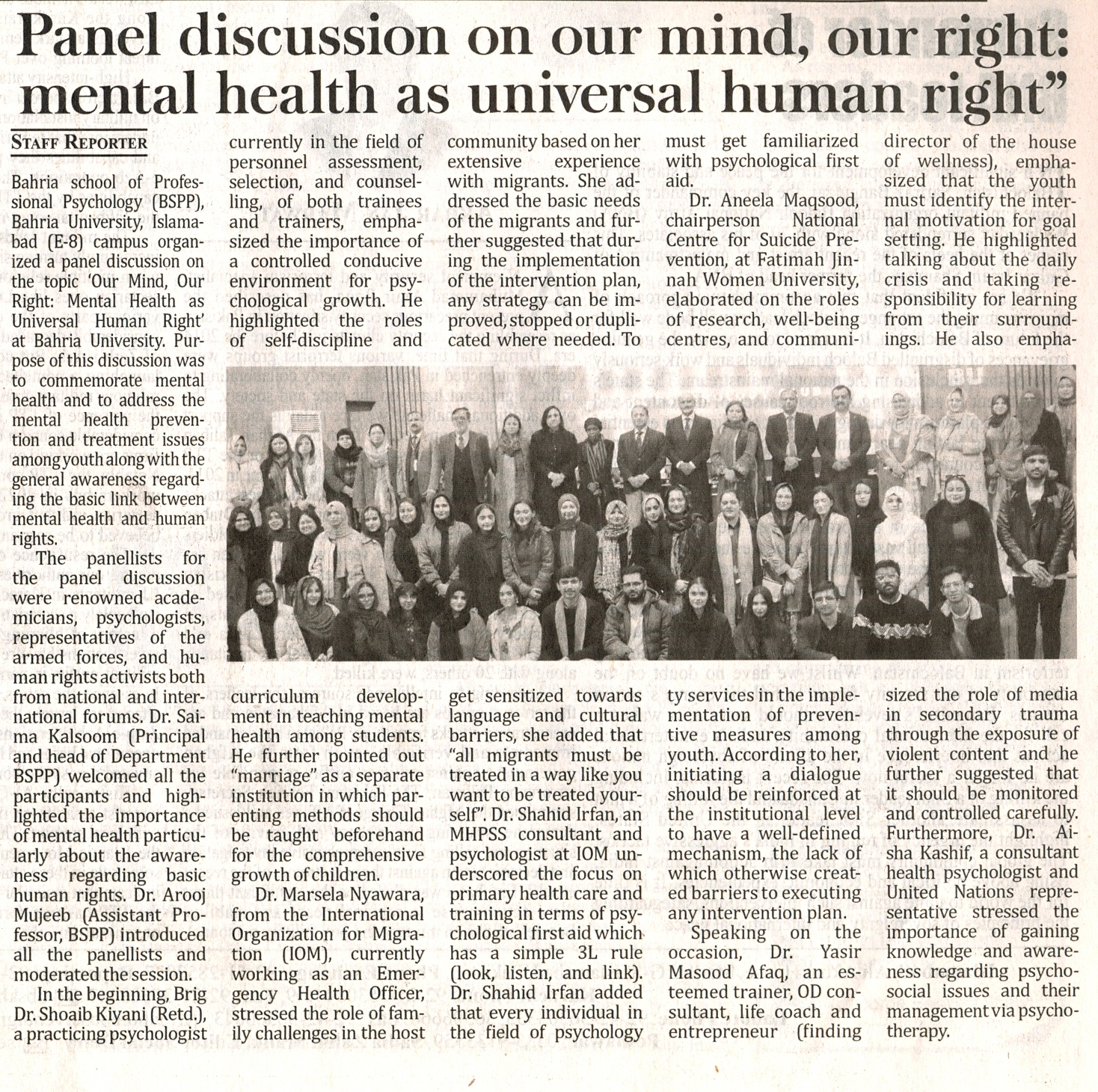 Panel Discussion on "Our Mind Our Right: Mental Health as Universal Human Right"