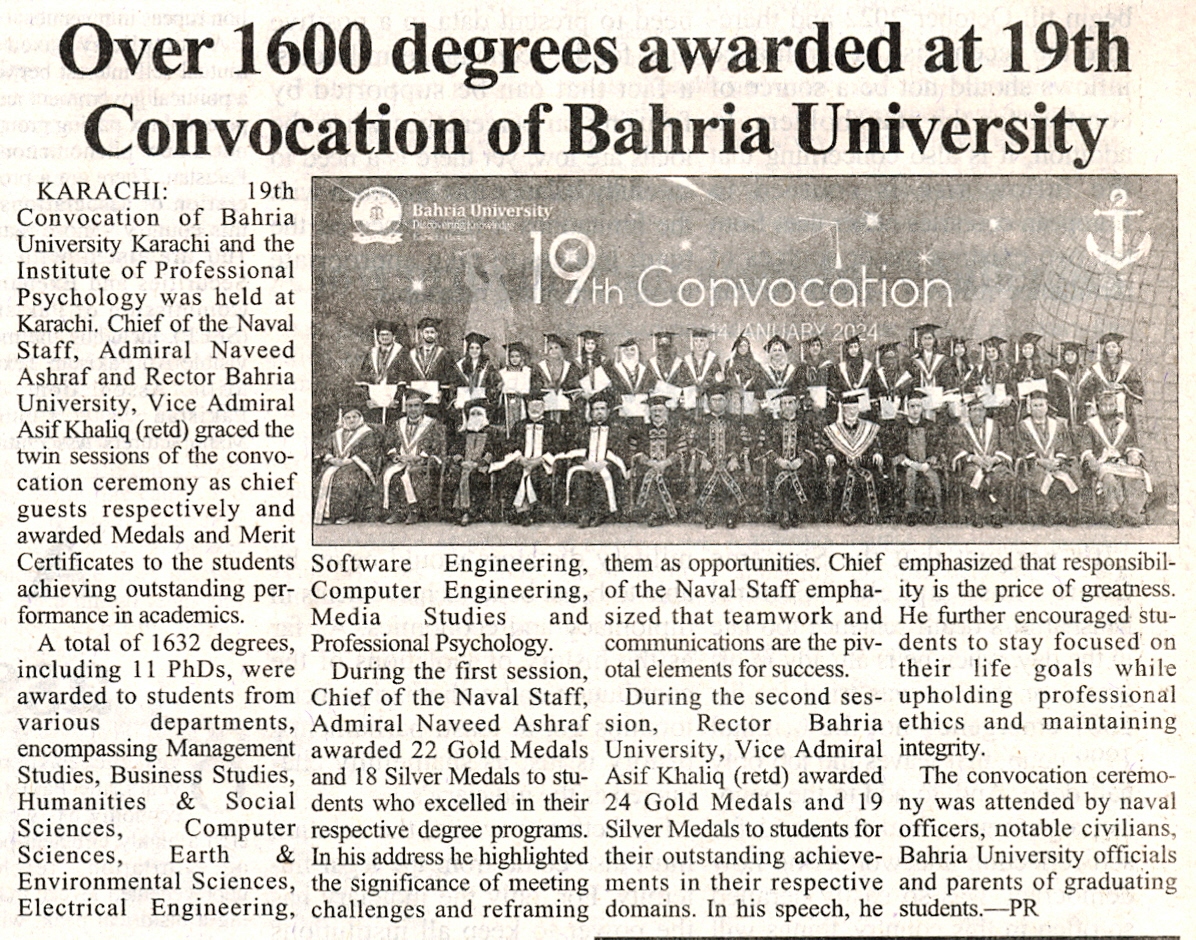 19th Convocation of Bahria University Karachi and the Institute of Professional Psychology