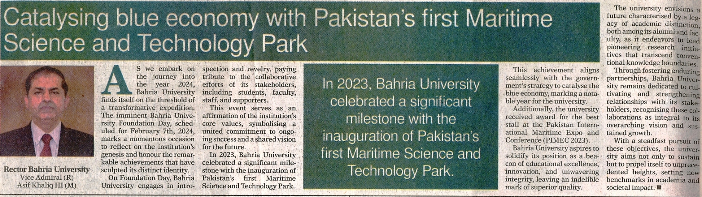 Catalysing Blue Economy with Pakistan's First Maritime Science and Technology Park