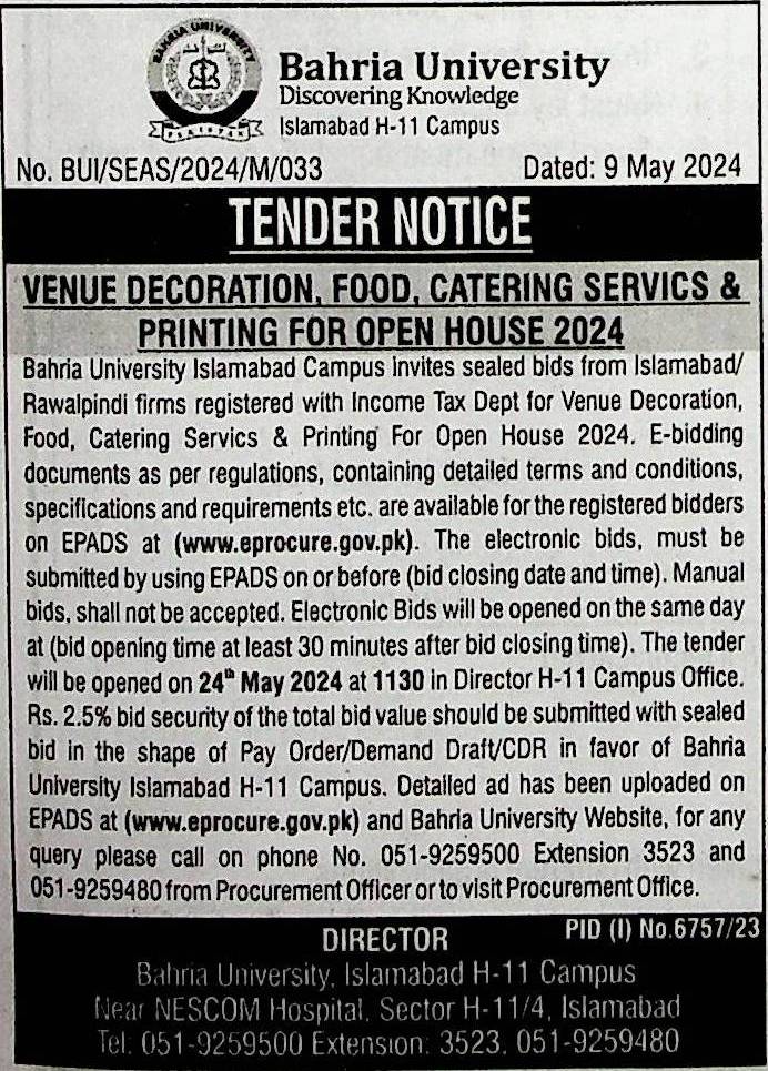 Venue Decoration, Food, Catering Service & Printing for Open House 2024