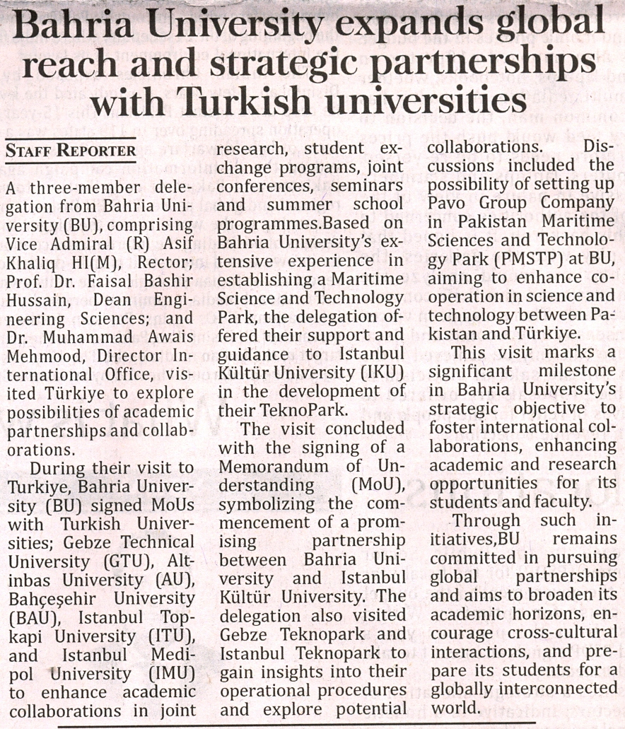 Bahria University Expands Global Reach and Strategic Partnerships with Turkish University