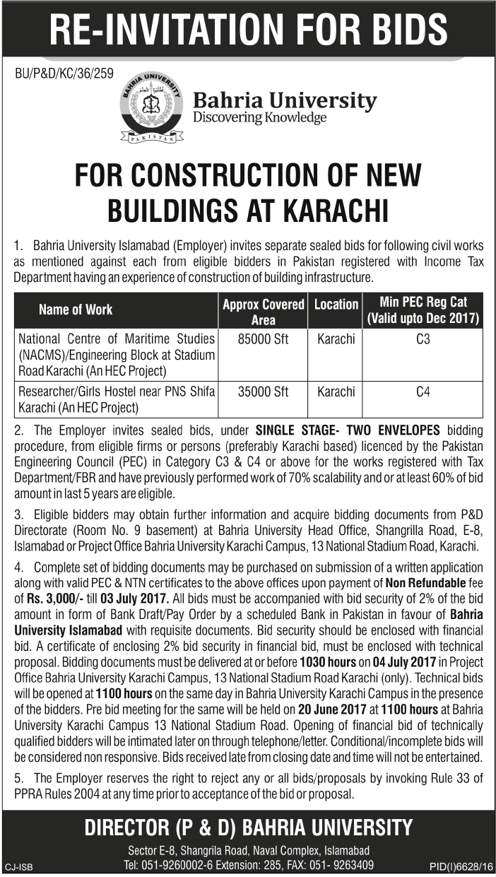For Construction of New Building at Karachi