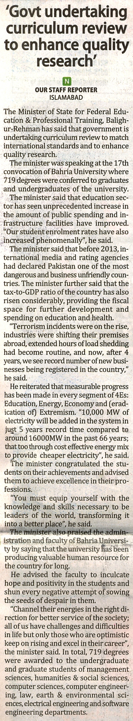 17th Convocation of Bahria University Islamabad Campus