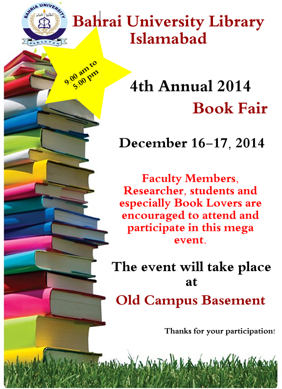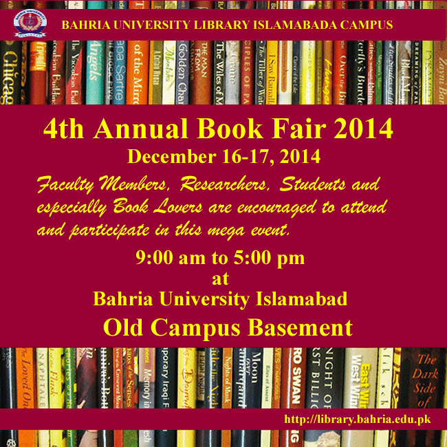 A two day Book Fair was organized at Bahria University Library Islamabad Campus on December 16 & 17, 2014. The students, faculty members and the distinguished guest took keen interest and thoroughly enjoyed the occasion.