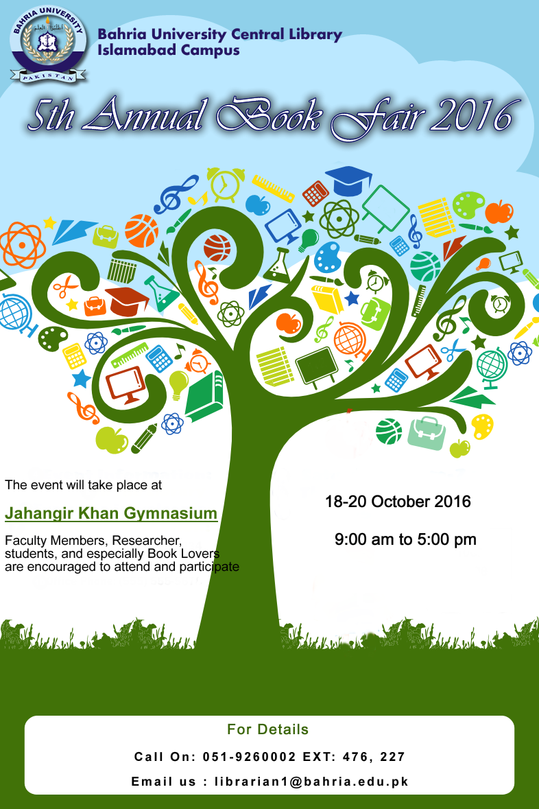 A three day Book Fair was organized at Bahria University Library Islamabad Campus on October 18 to 20, 2016. The students, faculty members and the distinguished guests took keen interest and thoroughly enjoyed the occasion.