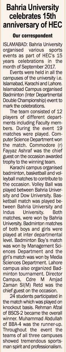 Bahria University celebrates 15th anniversary of HEC