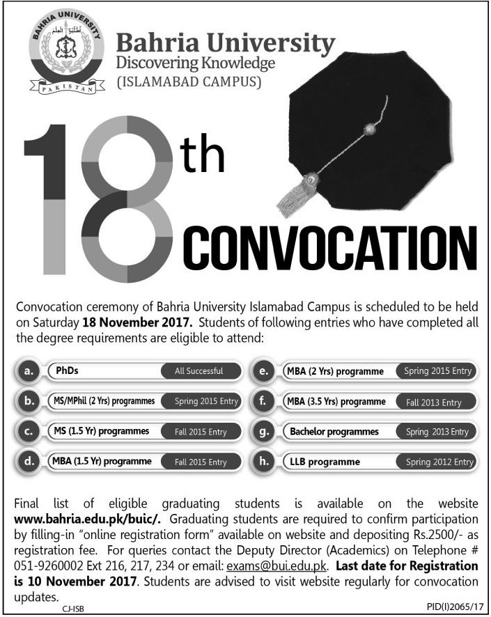 18th Convocation of Bahria University Islamabad Campus