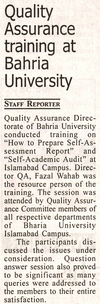 Quality Assurance training at Bahria University