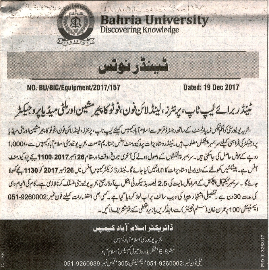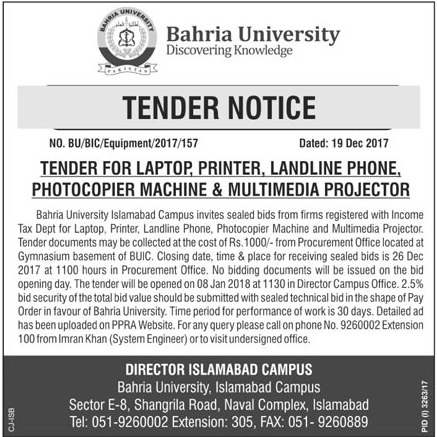 Tender for Laptop, Printer, Landline Phone, Photocopier Machine & Multimedia Projector