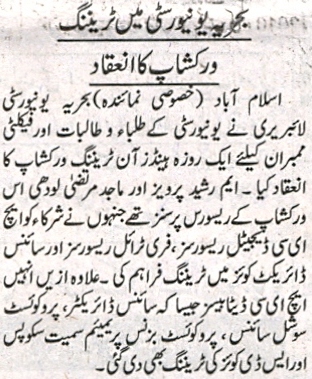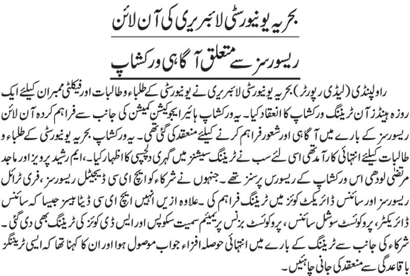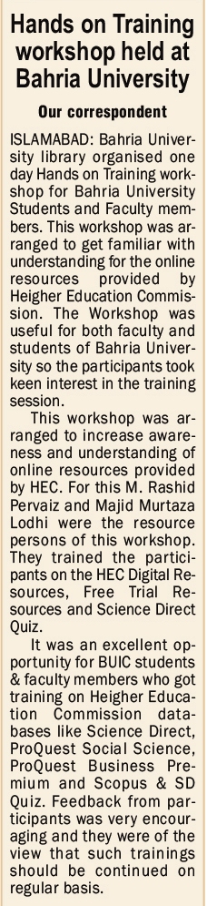 Hand on training workshop on HEC digital resource and scienceDirect quiz