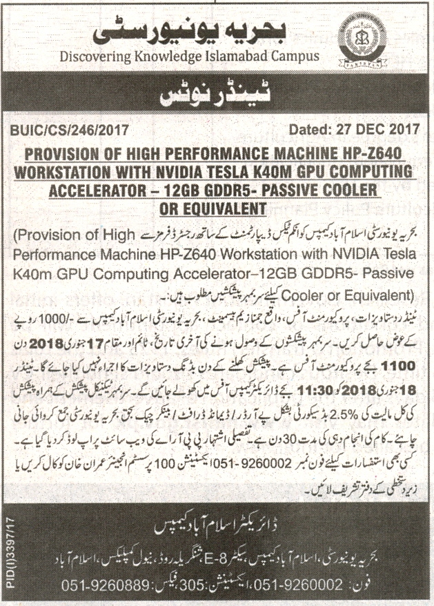 Provision of High Performance Machine HP-Z640 Workstation with NVIDIA Tesla K40M GPU Computing Accelerator - 12GB GDDR5-Passive Cooler or Equivalent