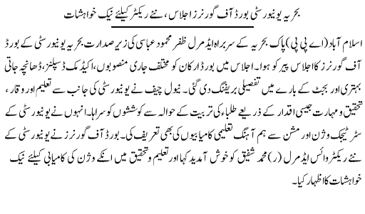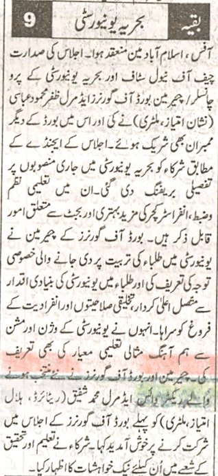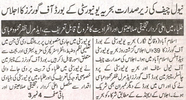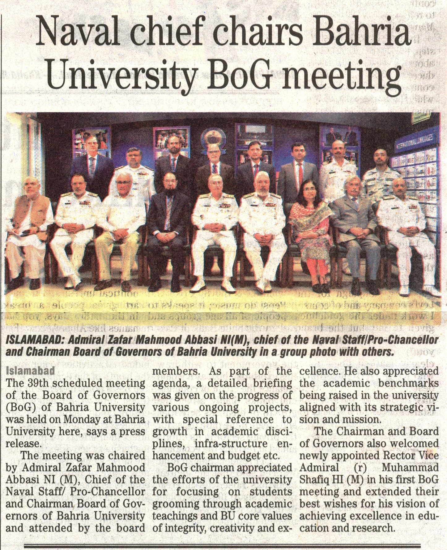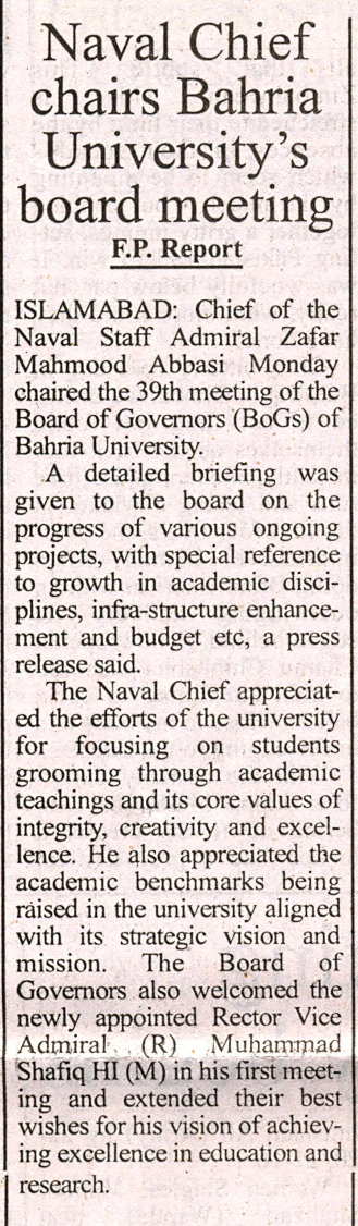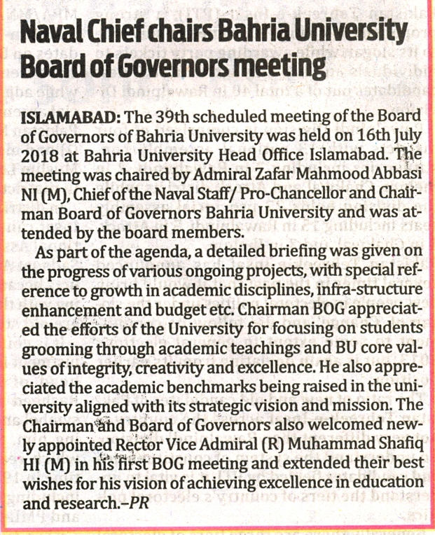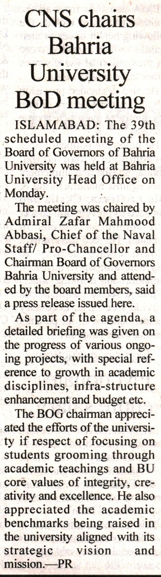 Naval Chief Chairs Bahria University BoG meeting