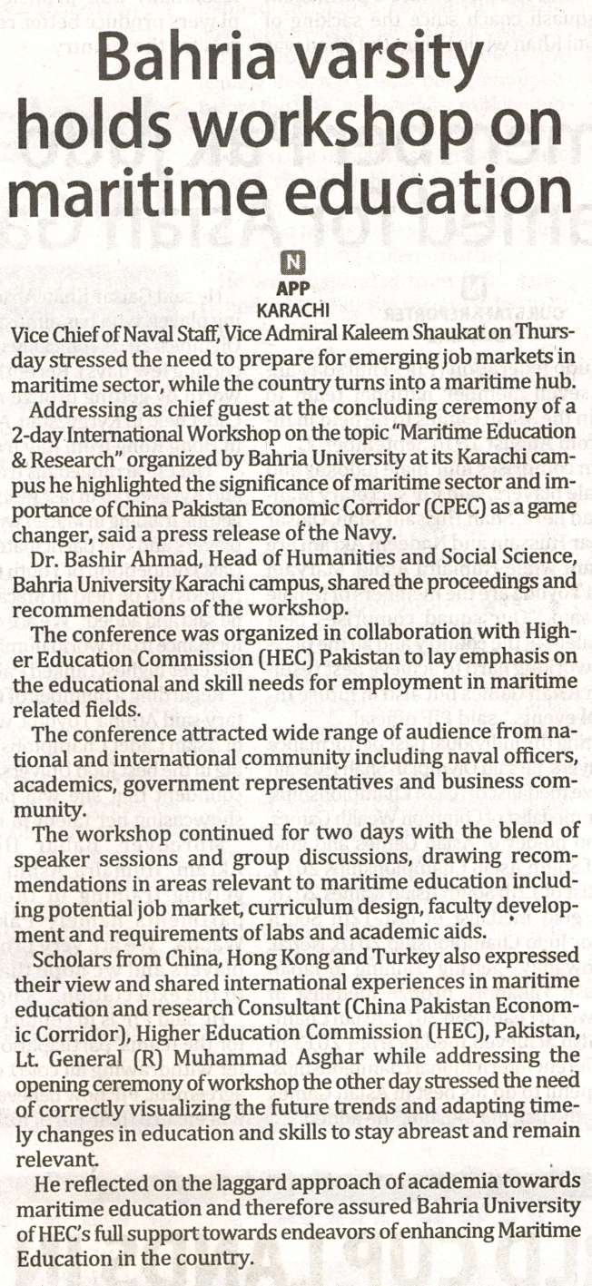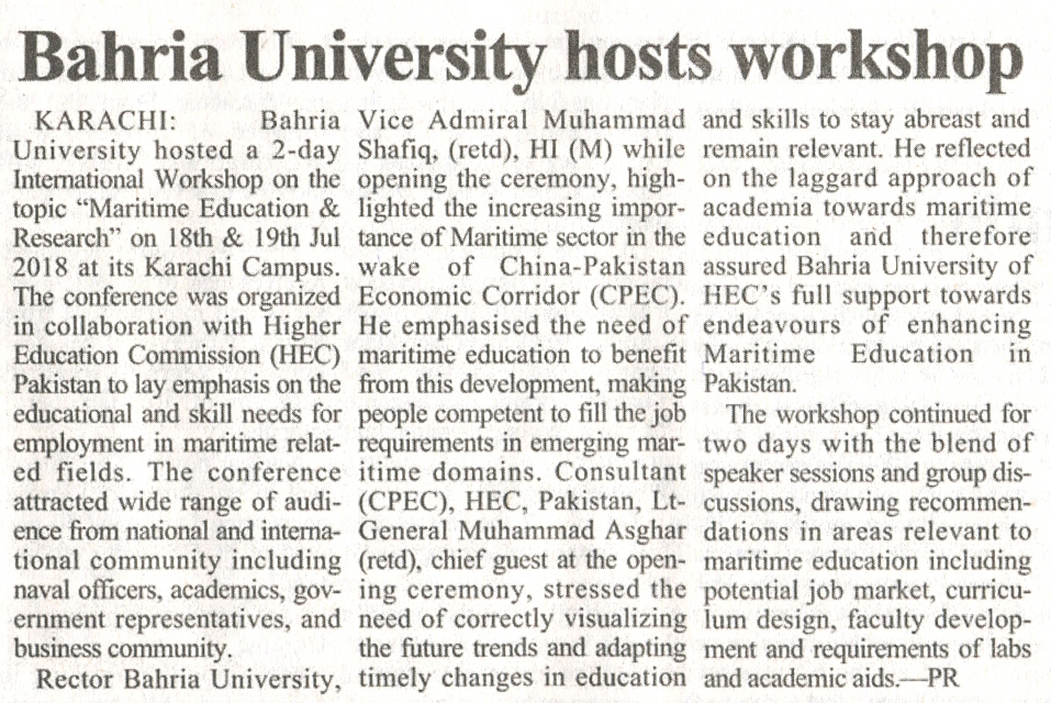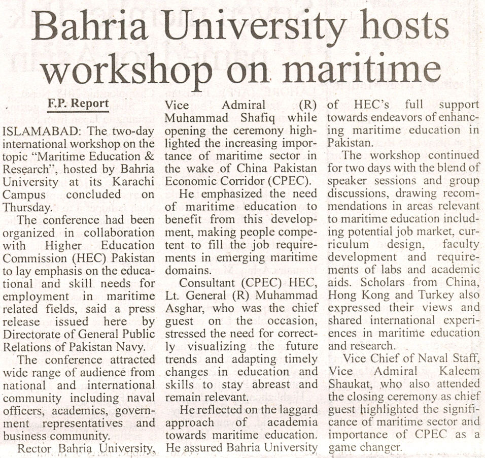 Bahria University holds workshop on maritime education