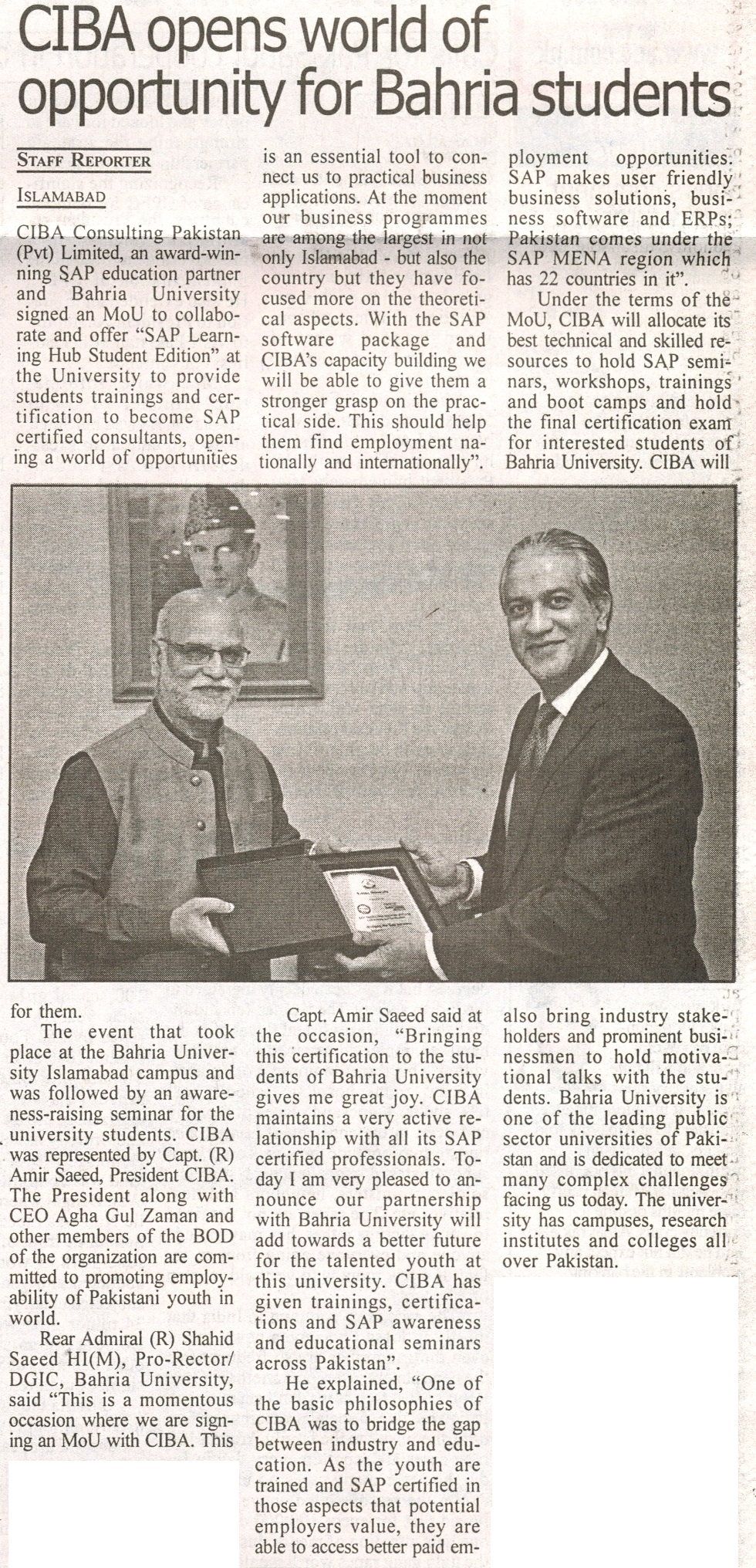 CIBA opens world of opportunity for Bahria studens