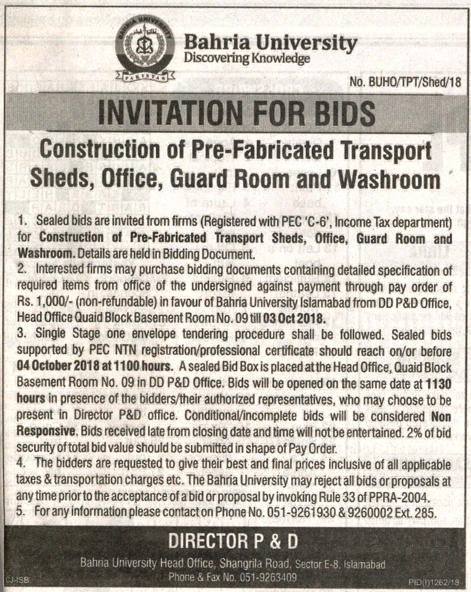 Construction of Pre-Fabricated Transport Sheds, Office, Guard Room and Washroom