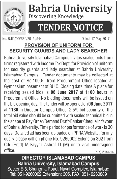 Provision of Uniform for Security Guards and Lady Searcher
