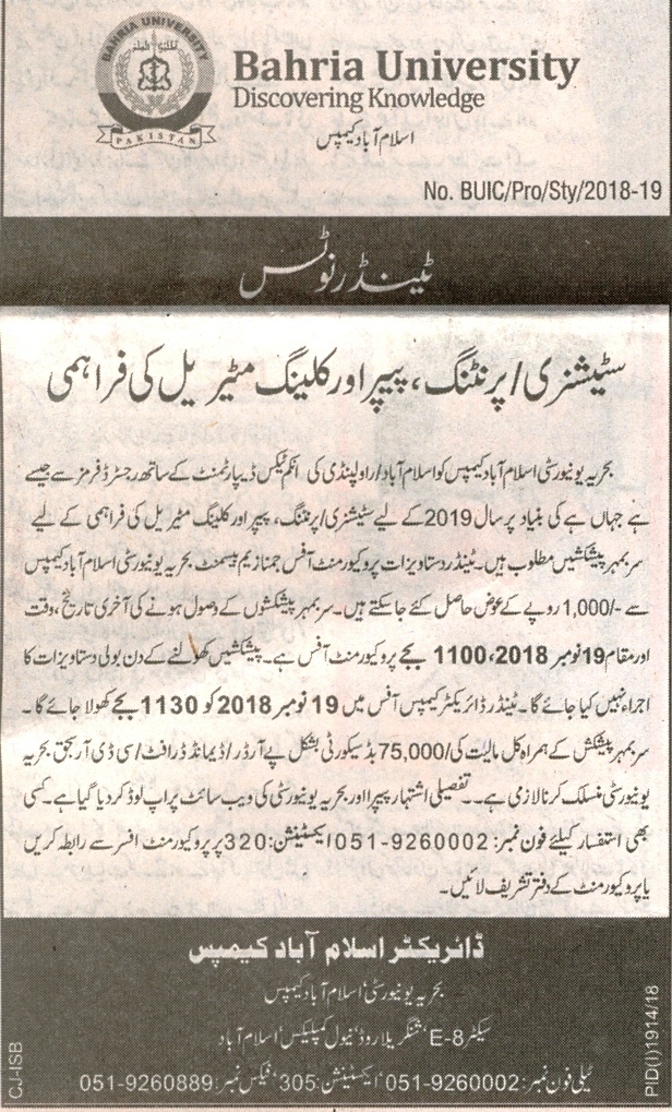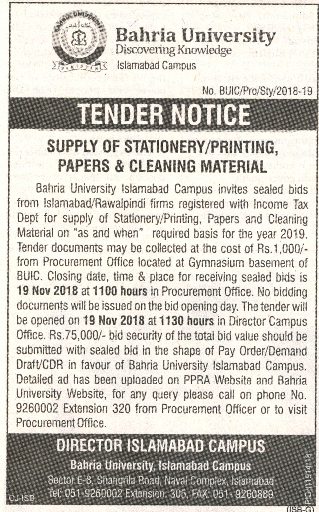 Supply of Stationery/Printing, Papers & Cleaning Material