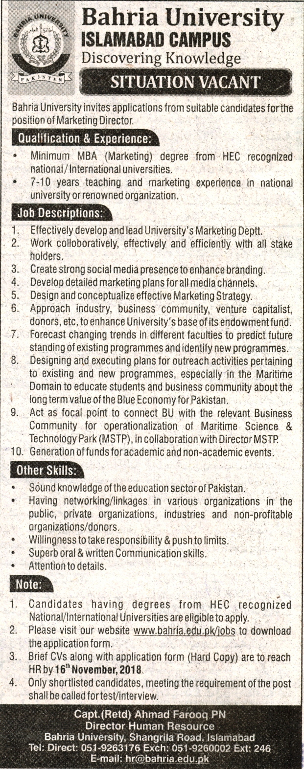 Situation Vacant (Marketing Director)