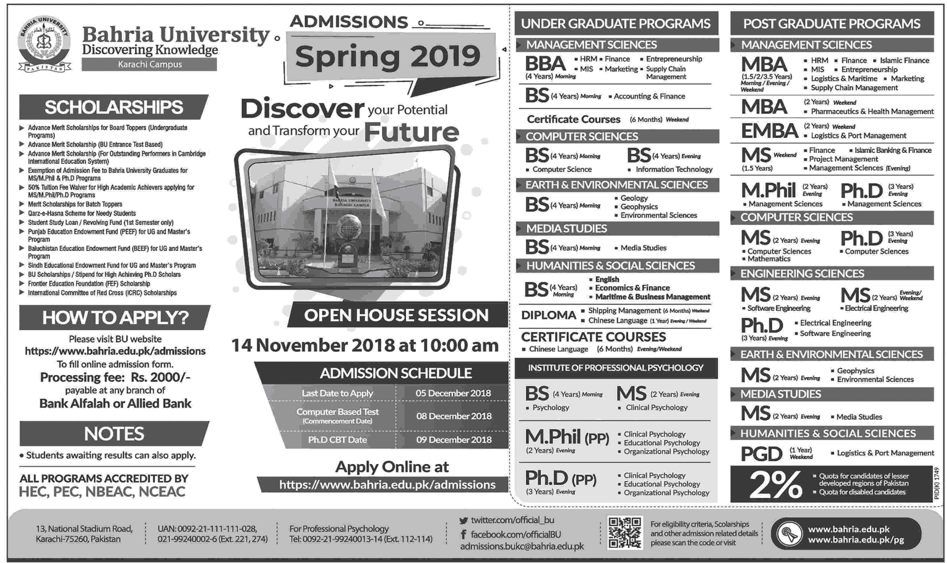 Admission Spring 2019 (Bahria University Karachi Campus)