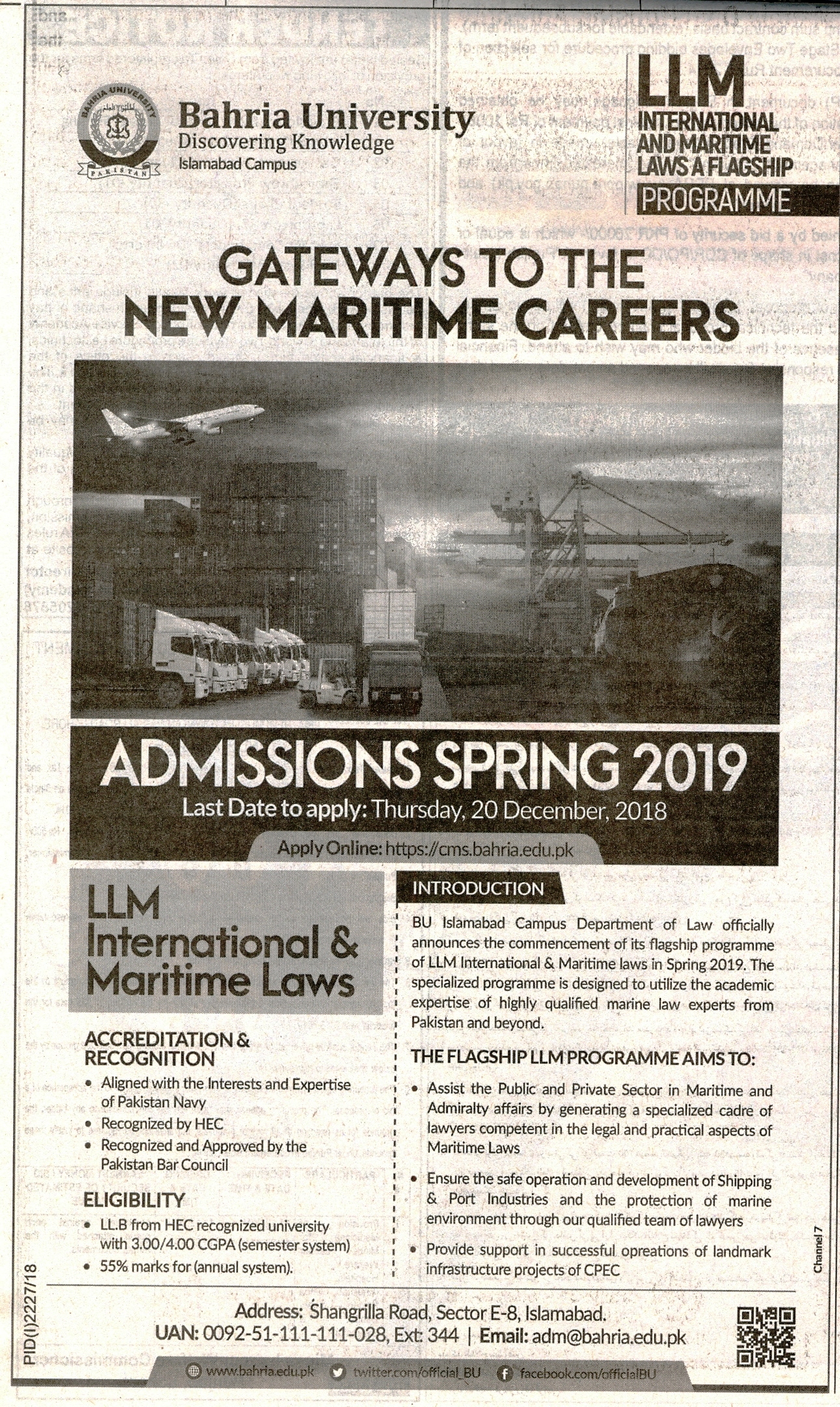 Admission Spring 2019 (Bahria University Islamabad)
