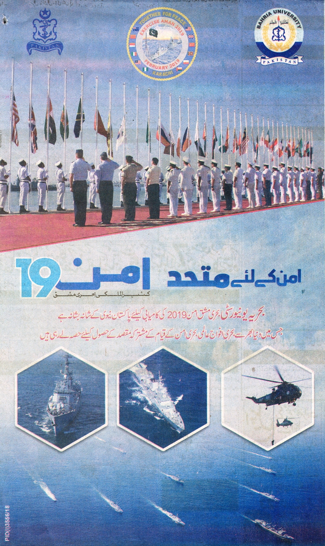 Bahria University joins hands with Pakistan Navy for AMAN-19