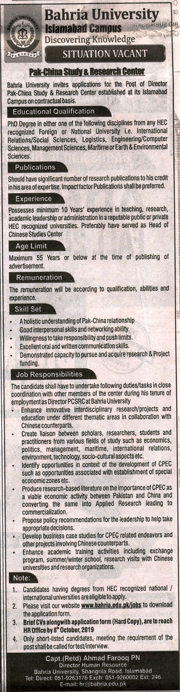 Director for Pak-China Study & Research Center