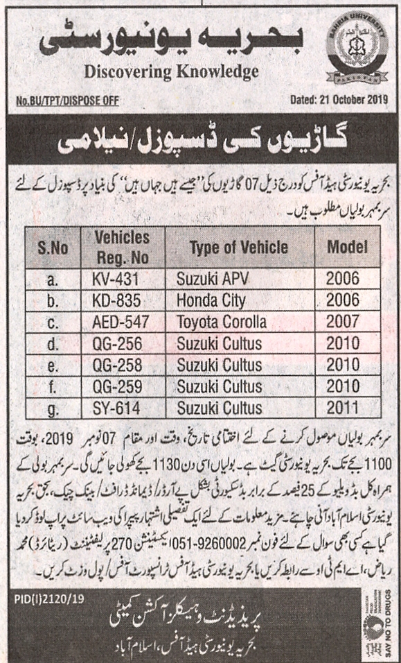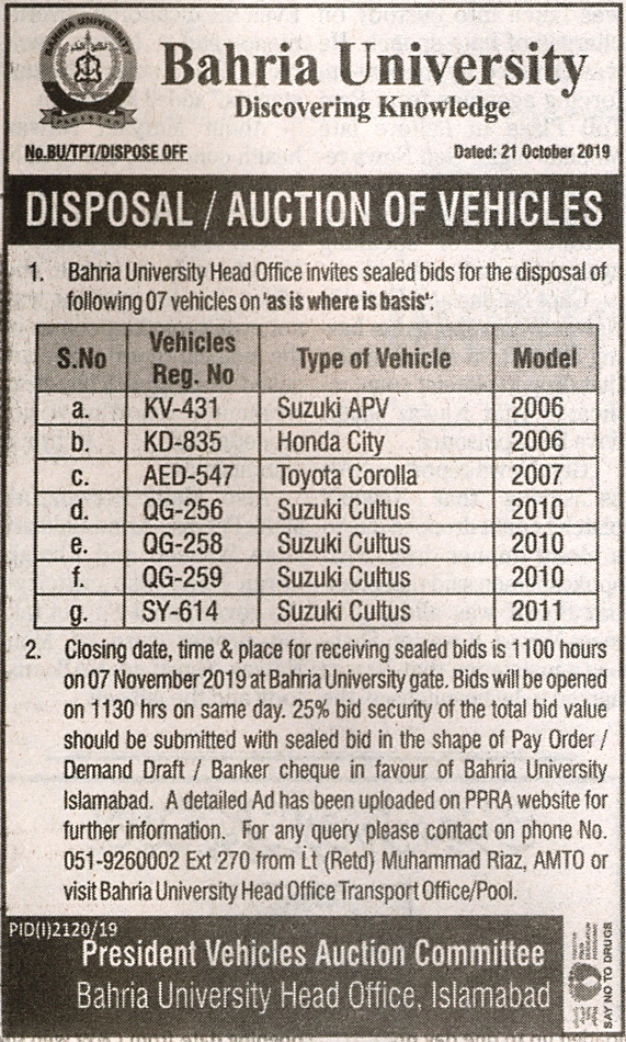 Disposal / Auction of Vehicles