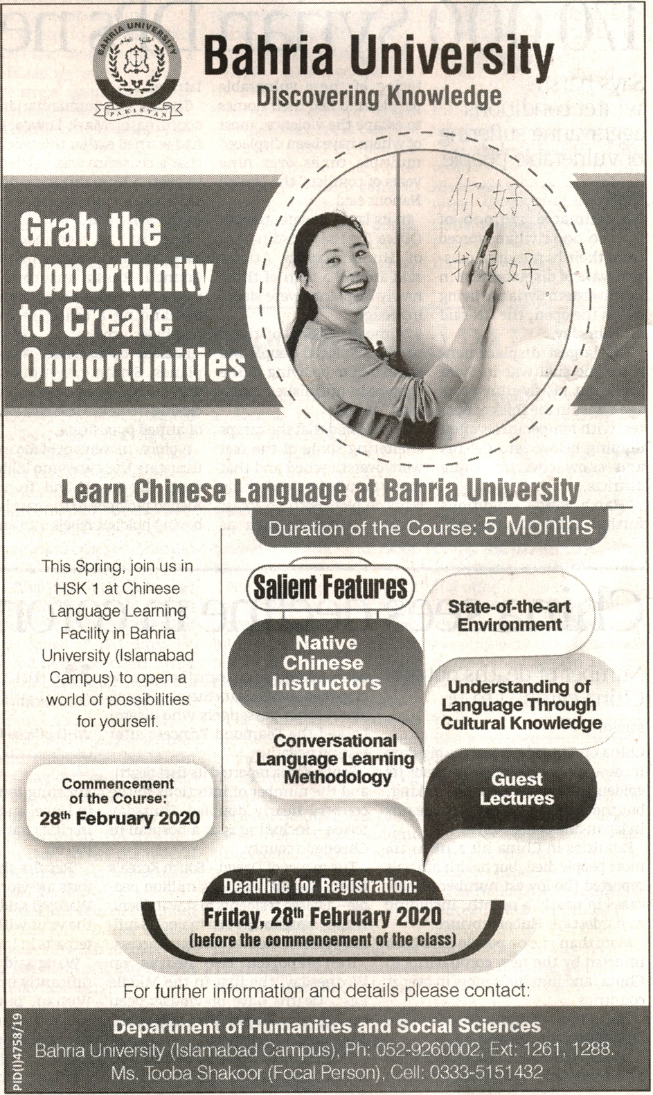 Short Course "Learn Chinese Language at Bahria University