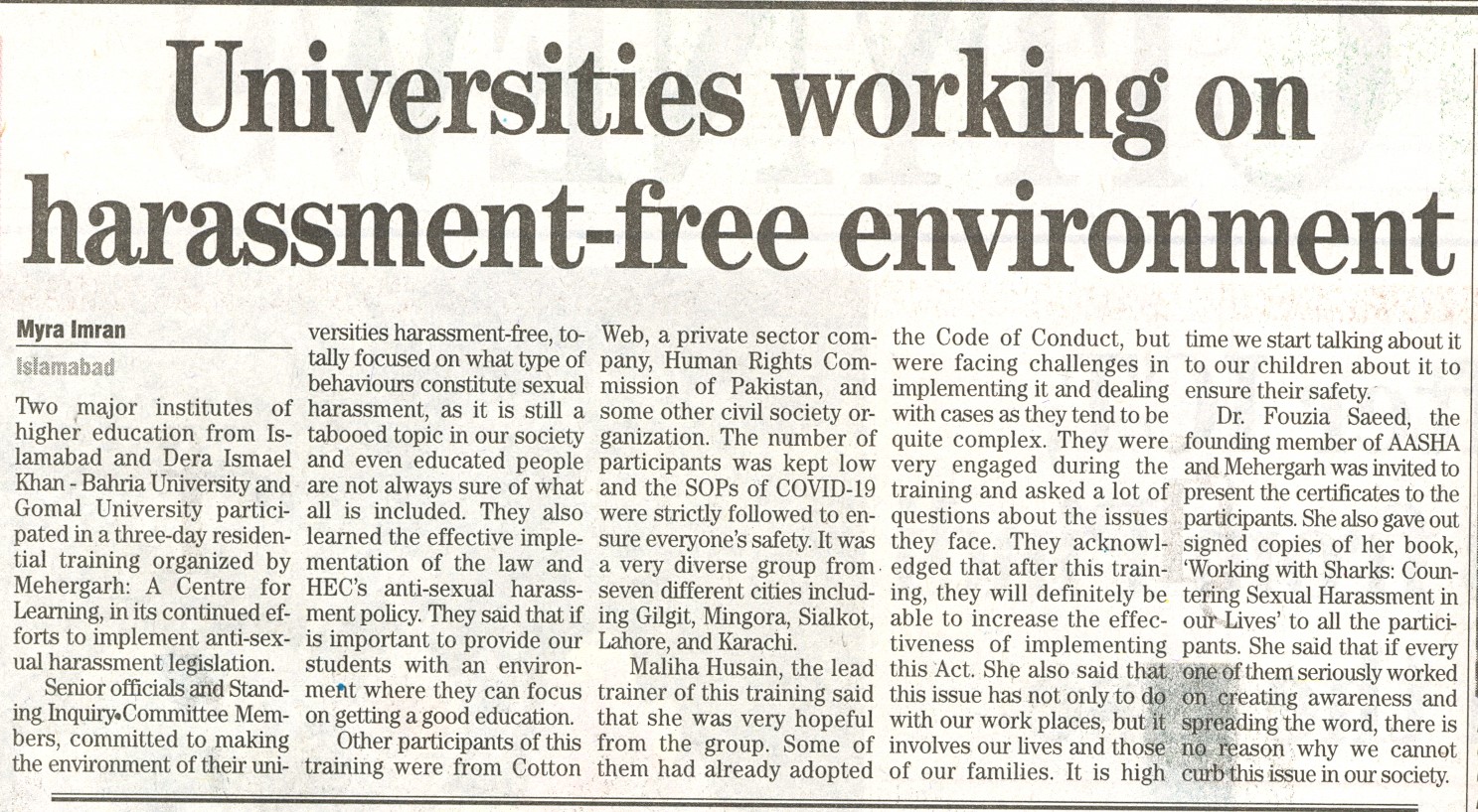 Universities working on harassment-free environment