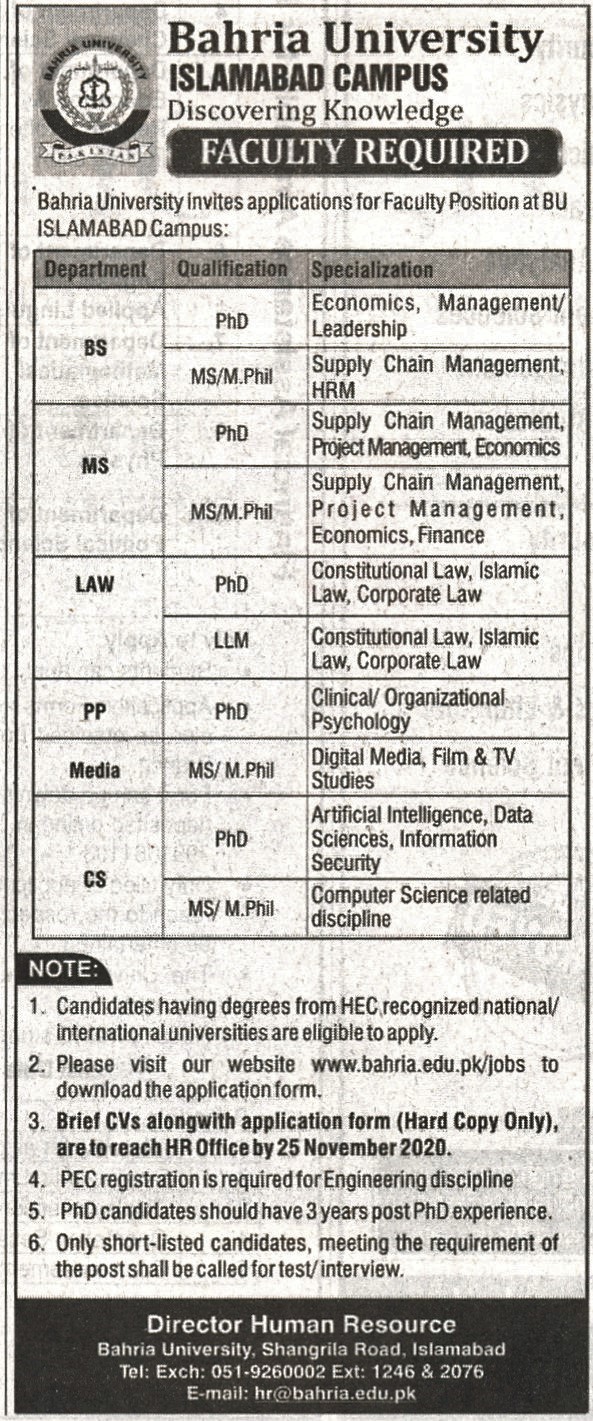 Faculty Required (BS, MS, LAW, PP, Media & CS)