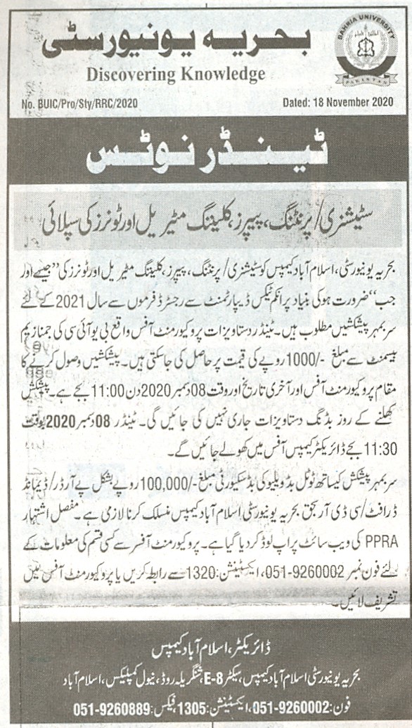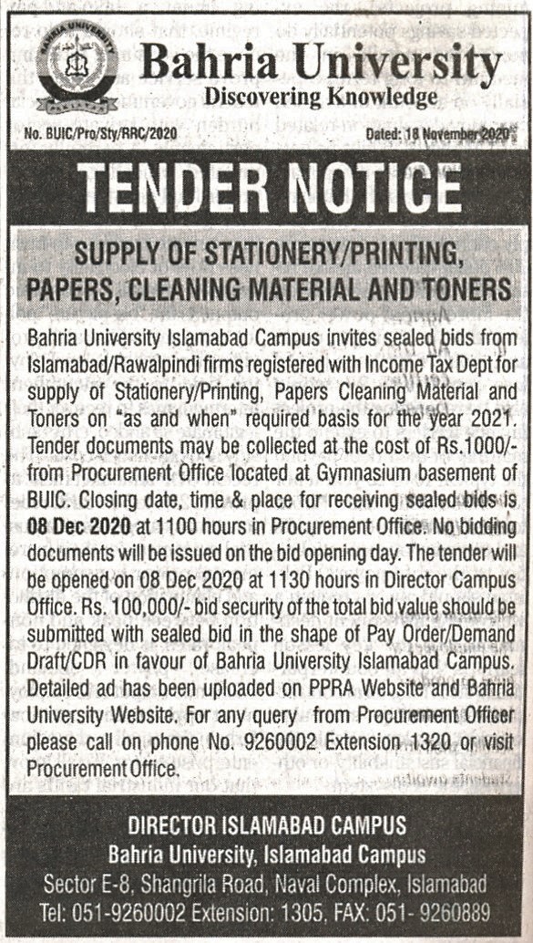 Supply of Stationery/Printing, Papers, Cleaning Material and Toner